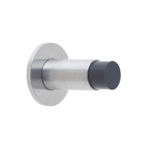 A single Baltic Grade 316 stainless steel 80mm projection x 25mm diameter wall mounted projecting skirting door stop with concealed fixing 52mm x 4mm rose