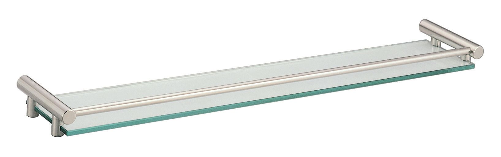 Arkitur satin grade 304 stainless steel concealed fixing glass toilet shelf. Supplied with fixings.