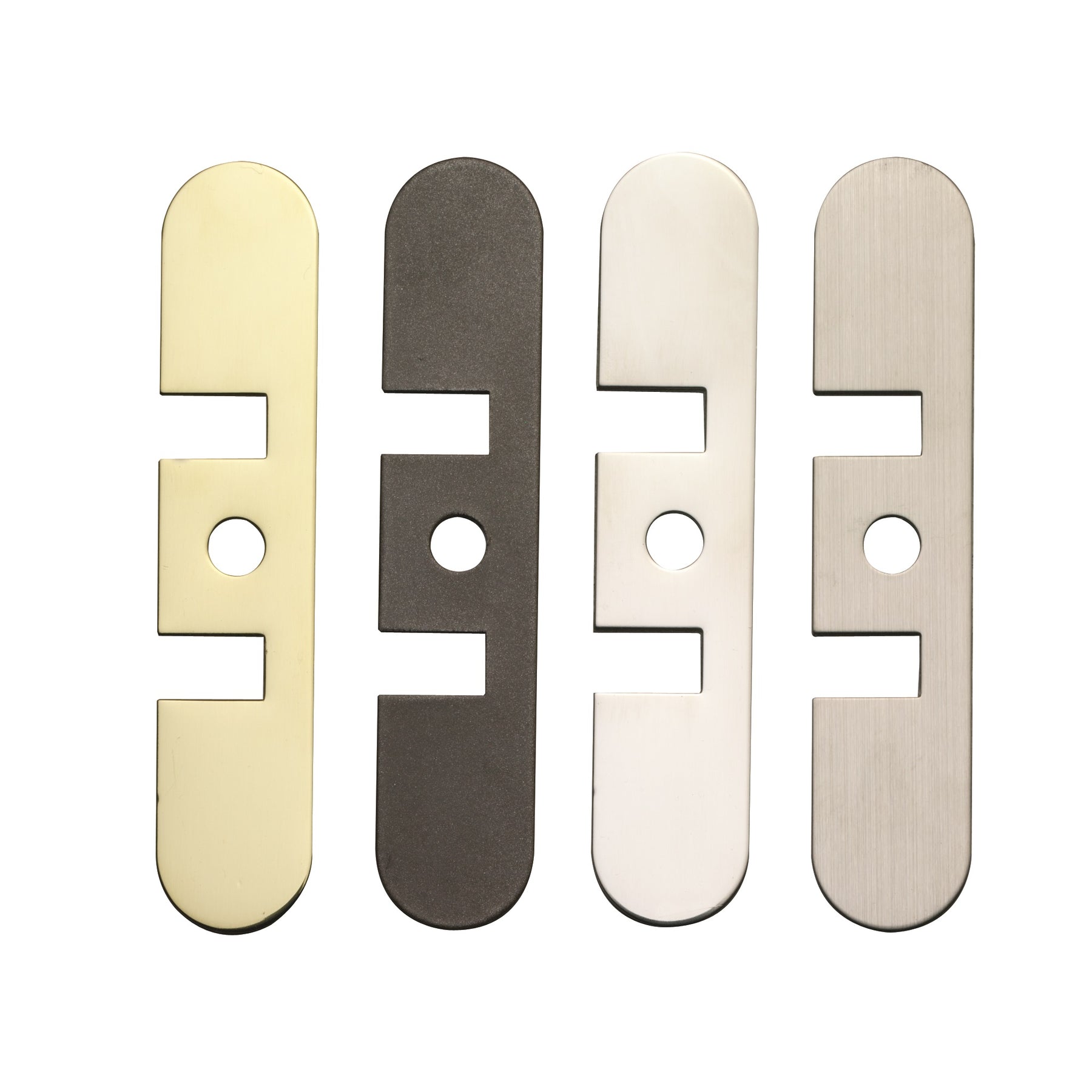 The standard closer has satin chrome faceplates which can be covered with various options namely, satin and polished stainless steel, polished brass and bronze.