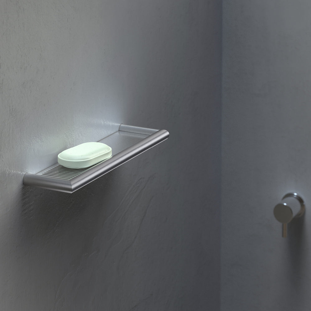 A collection of designer free standing and wall mounted and magnetic soap dishes, dishes and shelves from FROST Design, JNF and Wireworks.