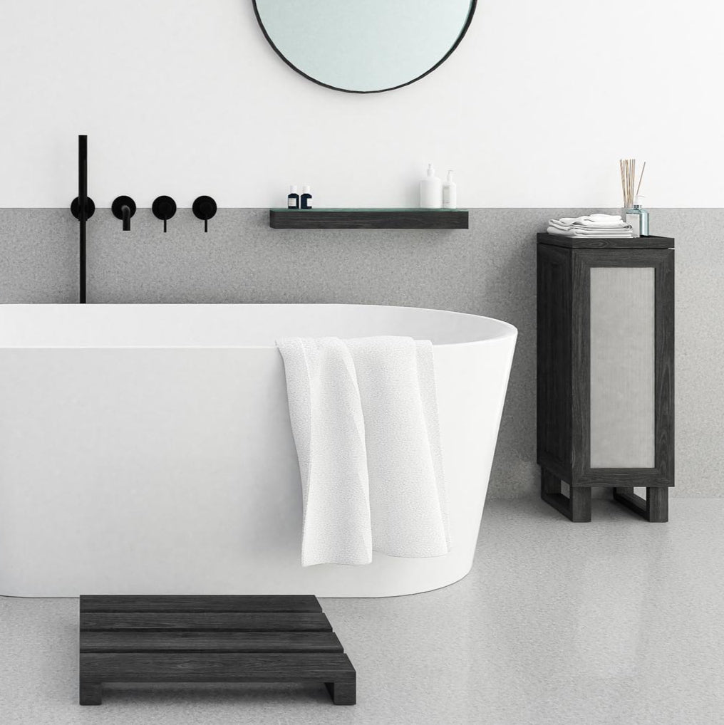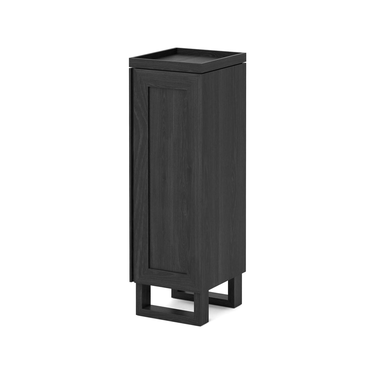 The Wireworks Tallboy Mezza dark oak features a lipped edge tray fixed to the top surface so useful items can be kept close at hand. Inside, the cupboard is supplied with two height adjustable shelves suitable for storing bottles, soaps, cosmetic products, cleaners and towels. The door is fitted with soft-close hinges and a concealed fingertip opening groove.