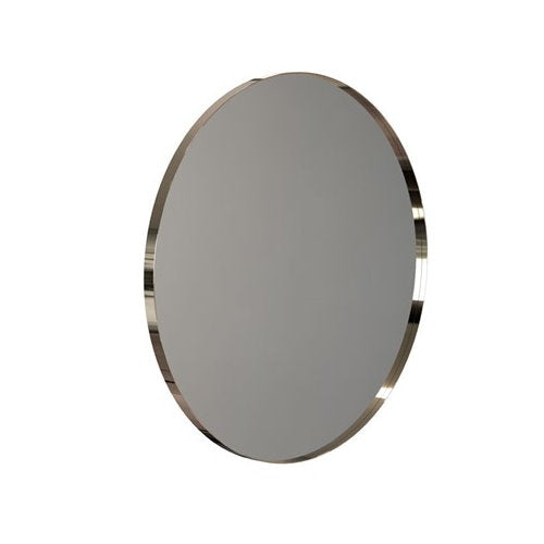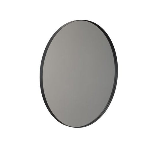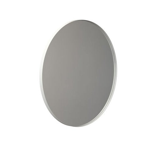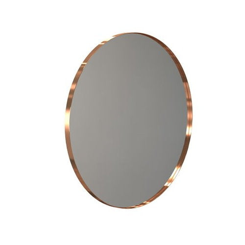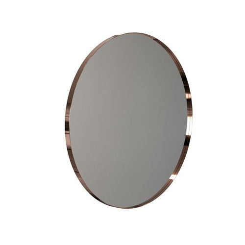 Frost Design UNU wall mounted 800mm diameter mirror with 2mm frame. Available in PVD stainless steel Copper and Gold and aluminium black and white frame finishes with black LED backplate and transformer.