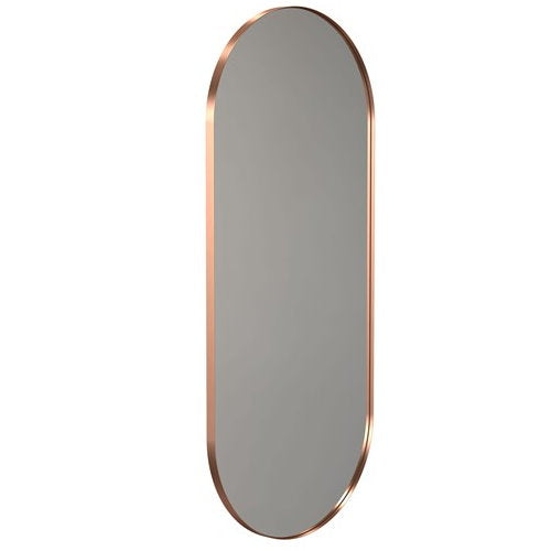 Frost Design UNU wall mounted 1400mm oval mirror with 2mm frame. Available in PVD Copper and Gold and aluminium black and white frame finishes, with black LED backplate with transformer.