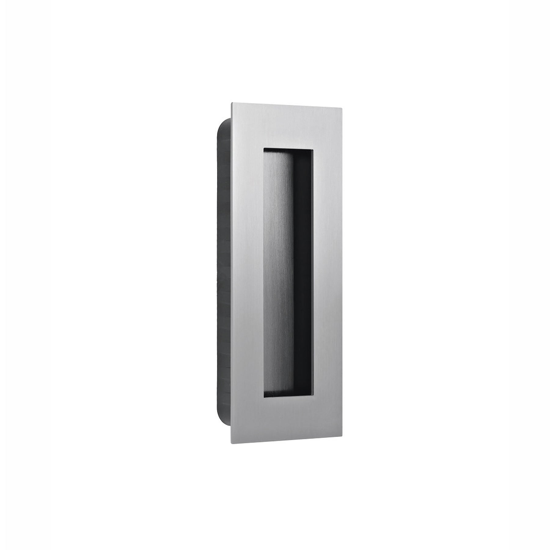 JNF grade 304 stainless steel rectangular recessed secret fixing kitchen, cupboard or sliding door pull handle fitting, which can either be vertical or horizontally mounted; suitable for self-adhesive and screw fixing (by drilling pilot holes in the side).