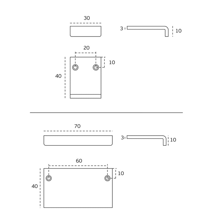 A single JNF grade 304 stainless steel 3mm thick 40mm projection edge pull handle with 10mm high lipped return which can be mounted horizontally or vertically for either cabinet draws or cupboards.