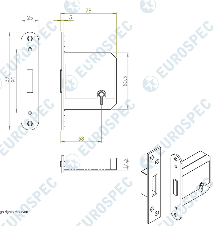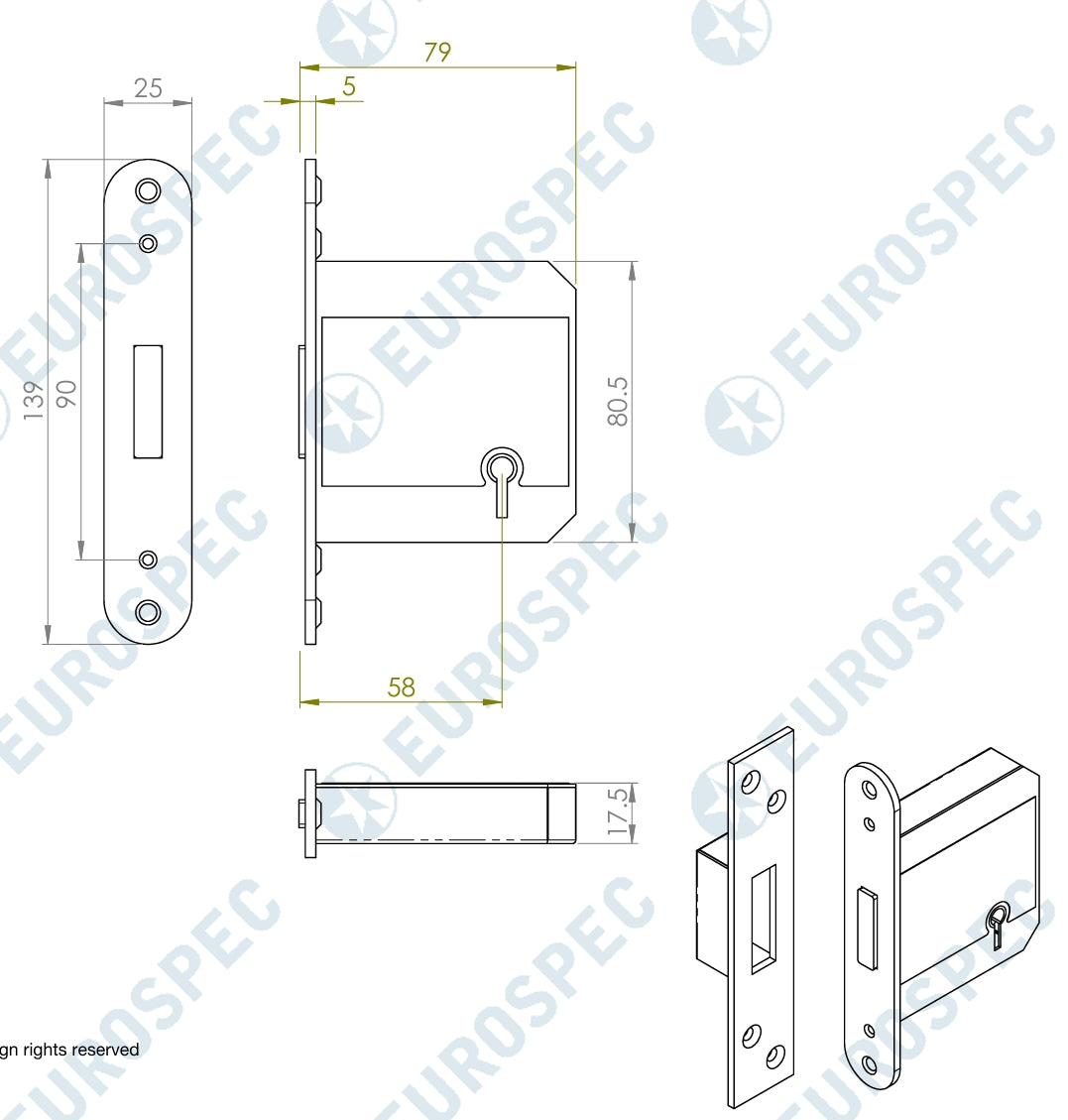 This 5 lever deadlock, supplied with two keys, is suitable for internal and external doors, and provides a high level of security conforming to British Standard BS3621:2004. This deadlock meets and generally exceeds the requirement needed by most home insurance company’s today. Approved by Secured by Design and Certifire.