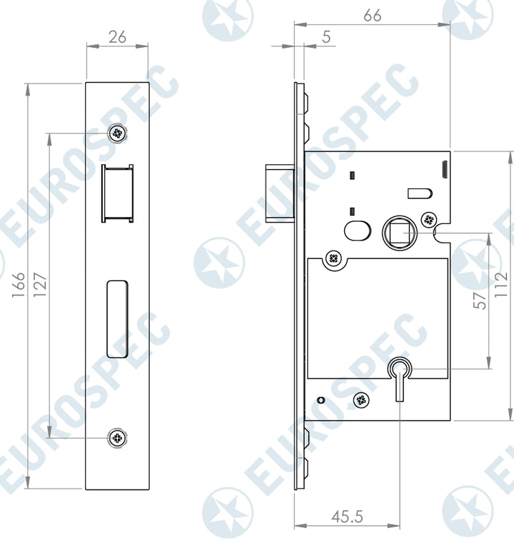 44.5mm backset/66mm case