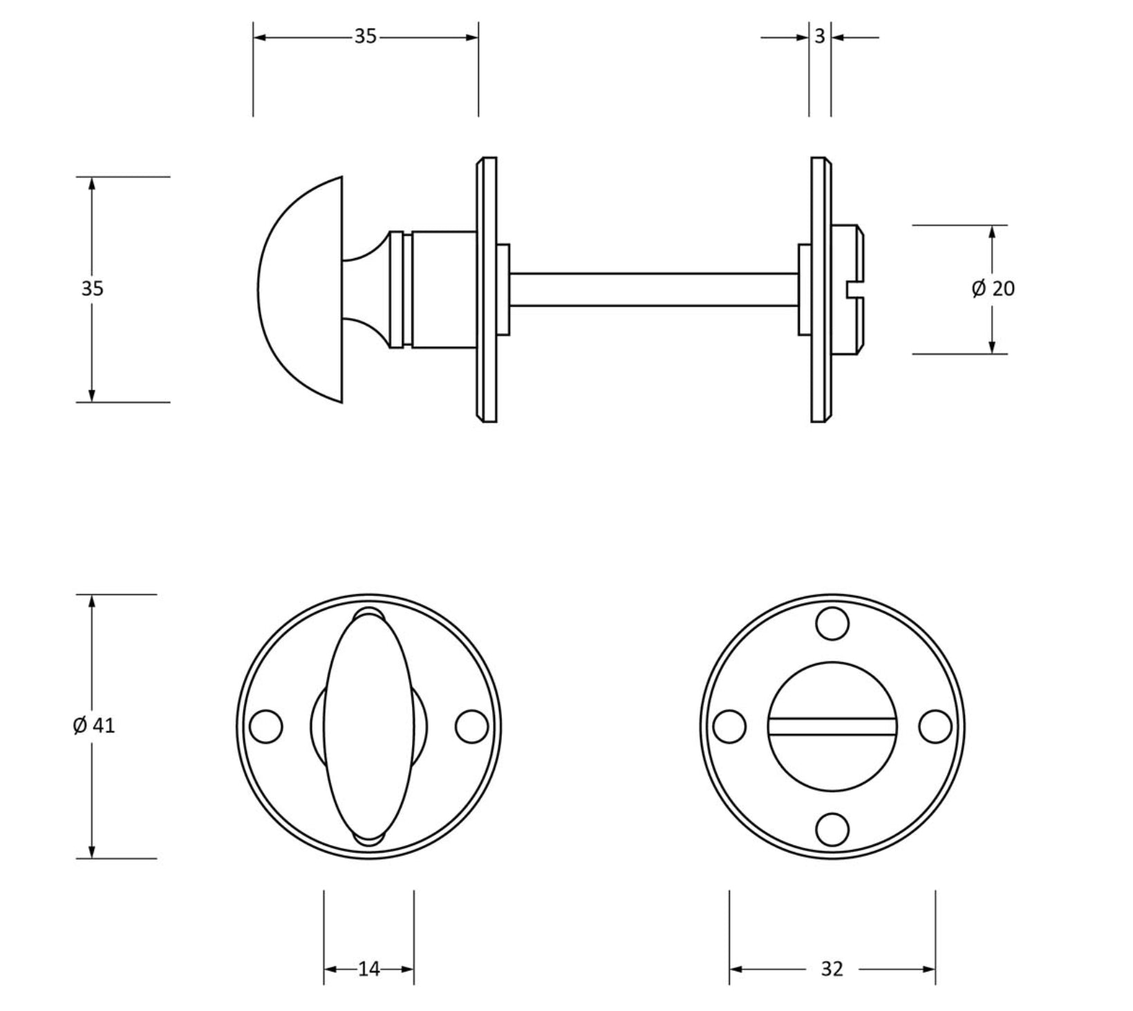 This bathroom thumbturn with slot release can be used in conjunction with many of the From the Anvil knob sets and bathroom mortice locks or as a stand alone item with a deadbolt.