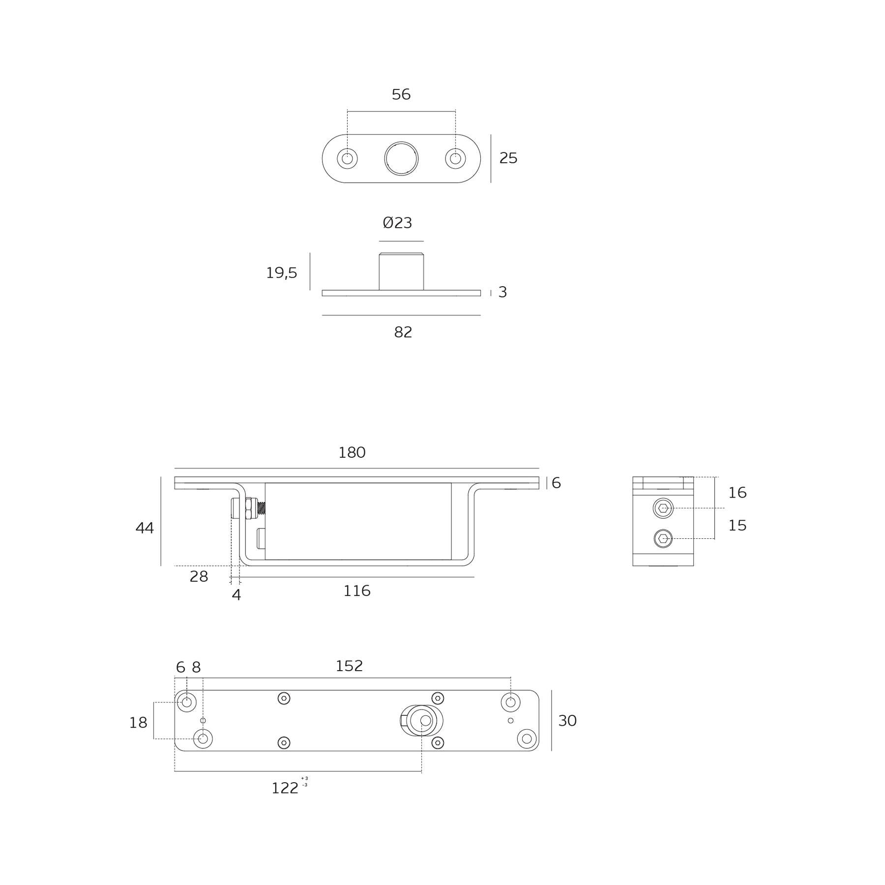 The stainless steel covered bottom plate is suitable for concrete floors with door adjustment +/- 3mm and also 4 degrees which enables the door to go tight to the ceiling noting that there will be a 6mm top and 14mm bottom gap.