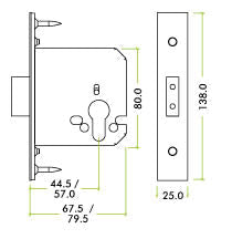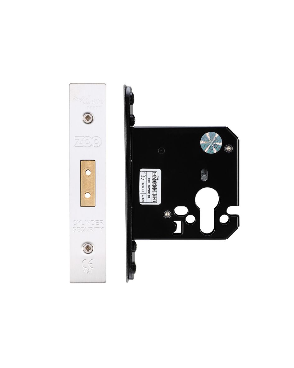 Zoo Hardware ZUKD76PS UK standard size deadlock to suit europrofile cylinders. Complete with matching Strike Plate (Frame) and fixings.