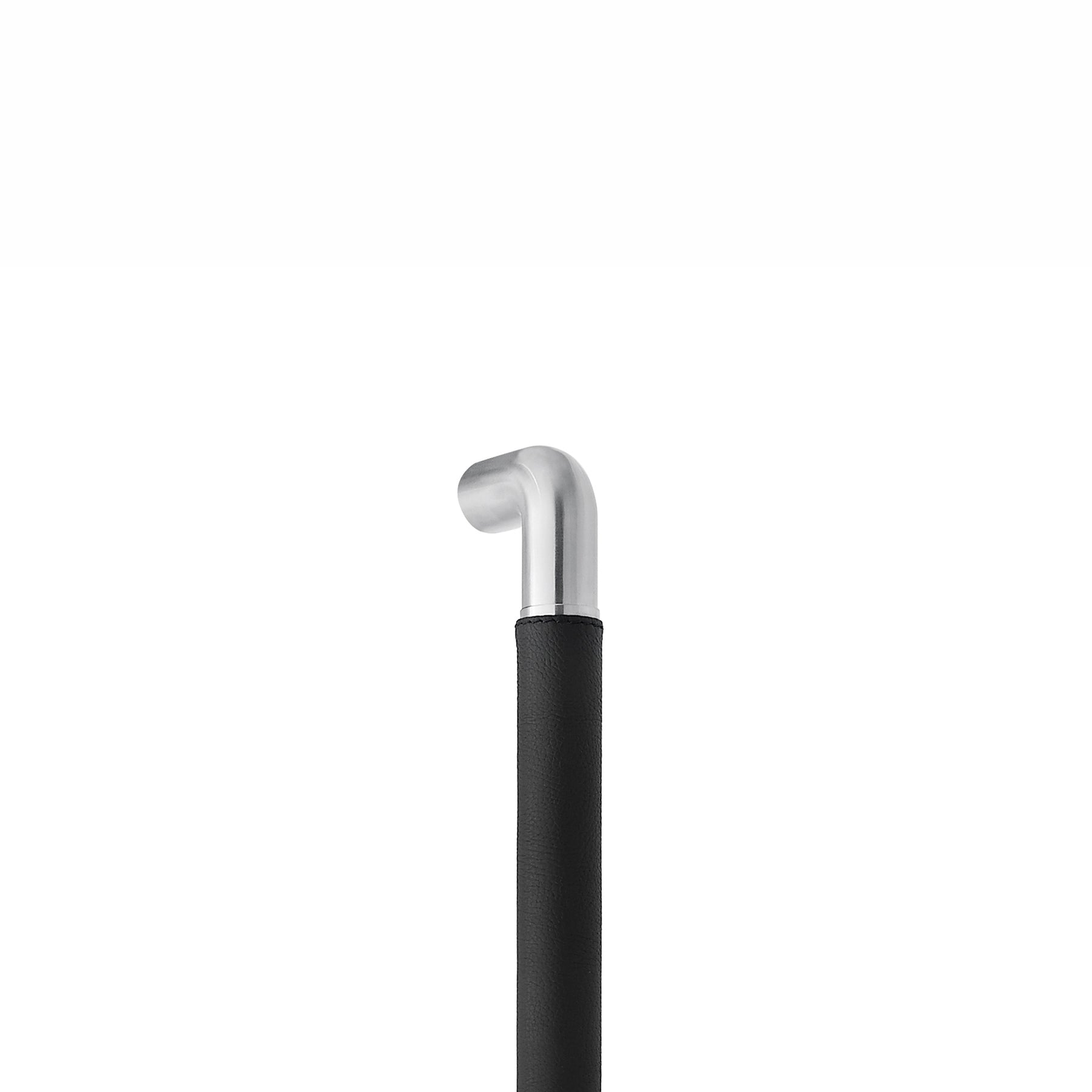 JNF Skin satin grade 304 stainless steel and natural leather d-shaped single pull handle, supplied with bolt through fixings to suit doors up to 50mm thick.