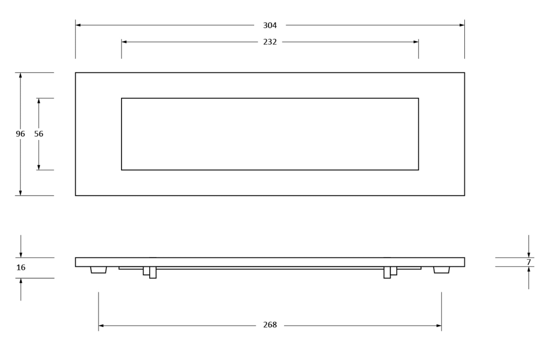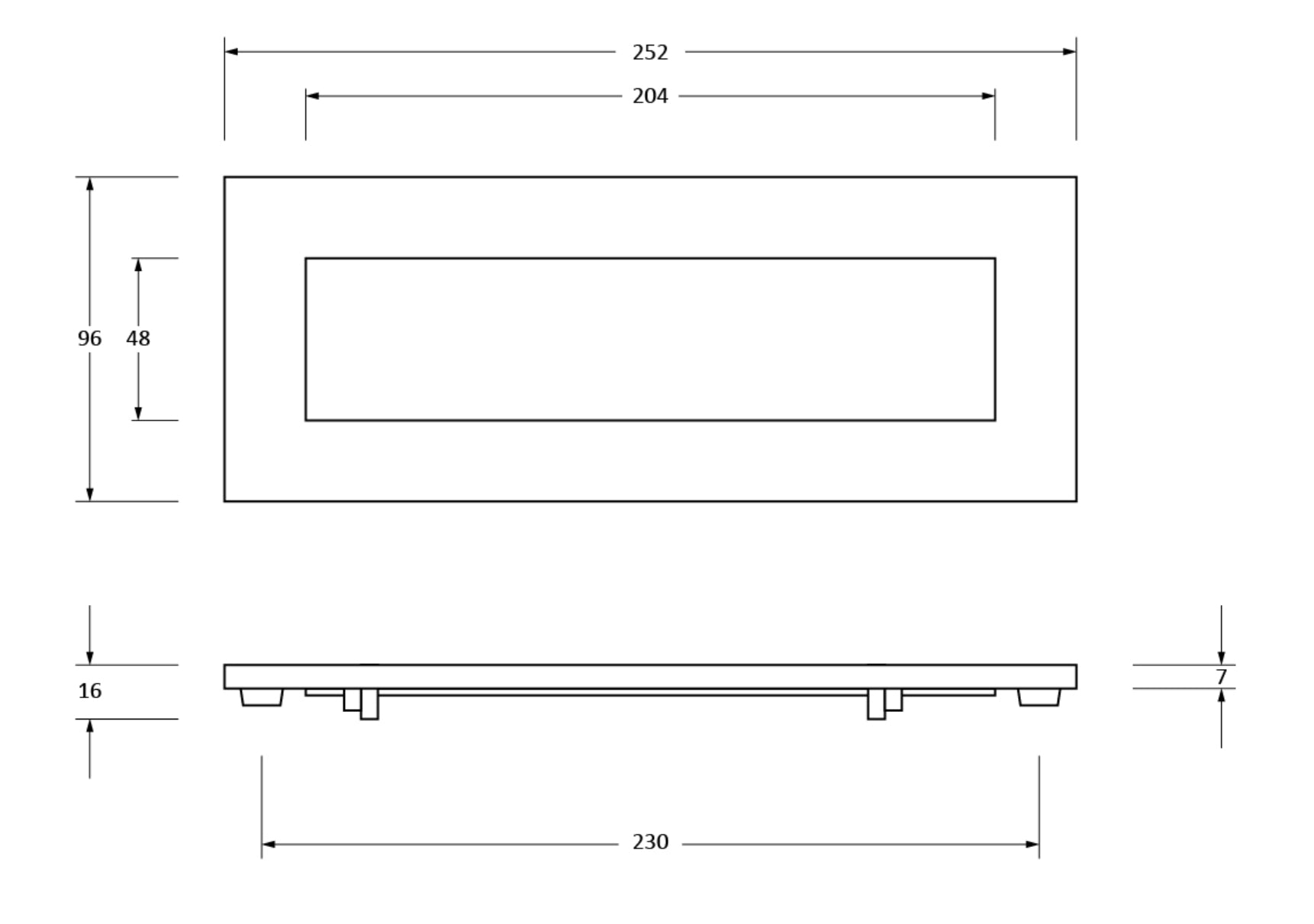 Opening Size: 232mm x 57mm