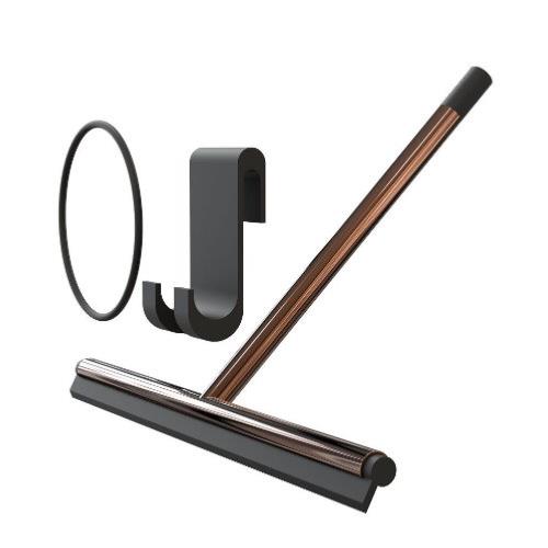 Frost Design NOVA2 1946 shower squeegee with black silicone rubber wiper, supplied with angle holder bracket.