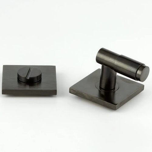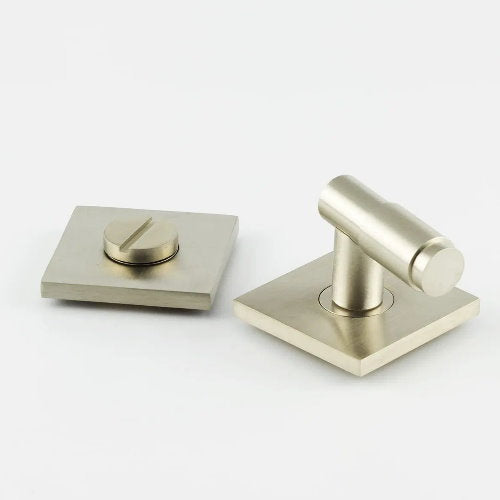The Hard and Ware Recess T-Bar Turn and Release Set 25 with a recessed T-Bar turn and slot release on 54mm diameter square rose to suit 5mm spindle bar, supplied complete with bolt through fixings and screws to suit door thickness 35-54mm