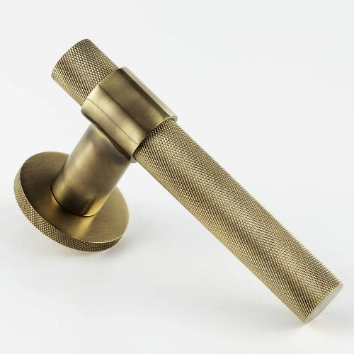 Hard and Ware TL1 solid brass T-Bar Knurled Lever on un sprung knurled round rose. With a two part concealed fixing 50mm diameter screw on round rose, with 8mm spindle bar, supplied complete with bolt through fixings and screws.