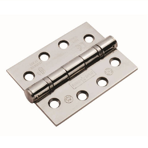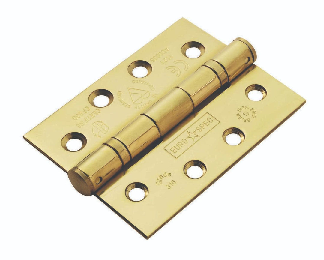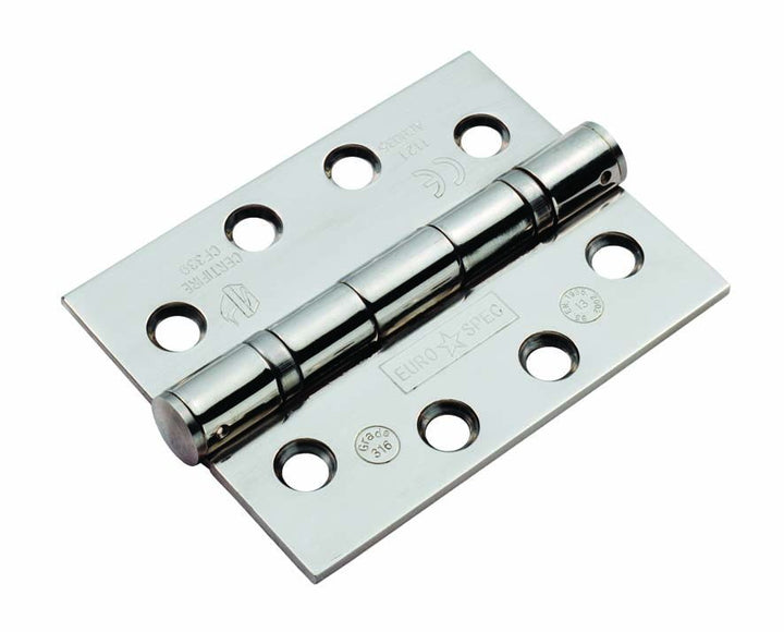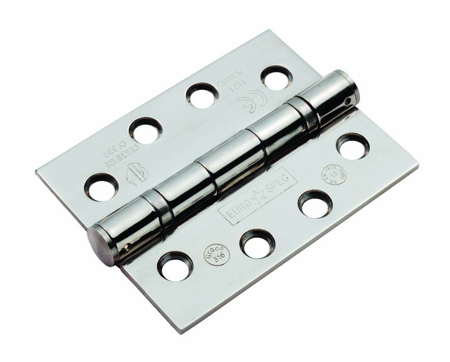 A pair (set of two) marine quality grade 316 stainless steel heavy duty Grade 13 ball bearing hinges with square corners to suit maximum door weight 120kgs per pair, suitable for use on fire doors and commercial buildings, tested and conforming to BSEN 1935:2002, CE Marked, supplied with screws. Certifire Tested.