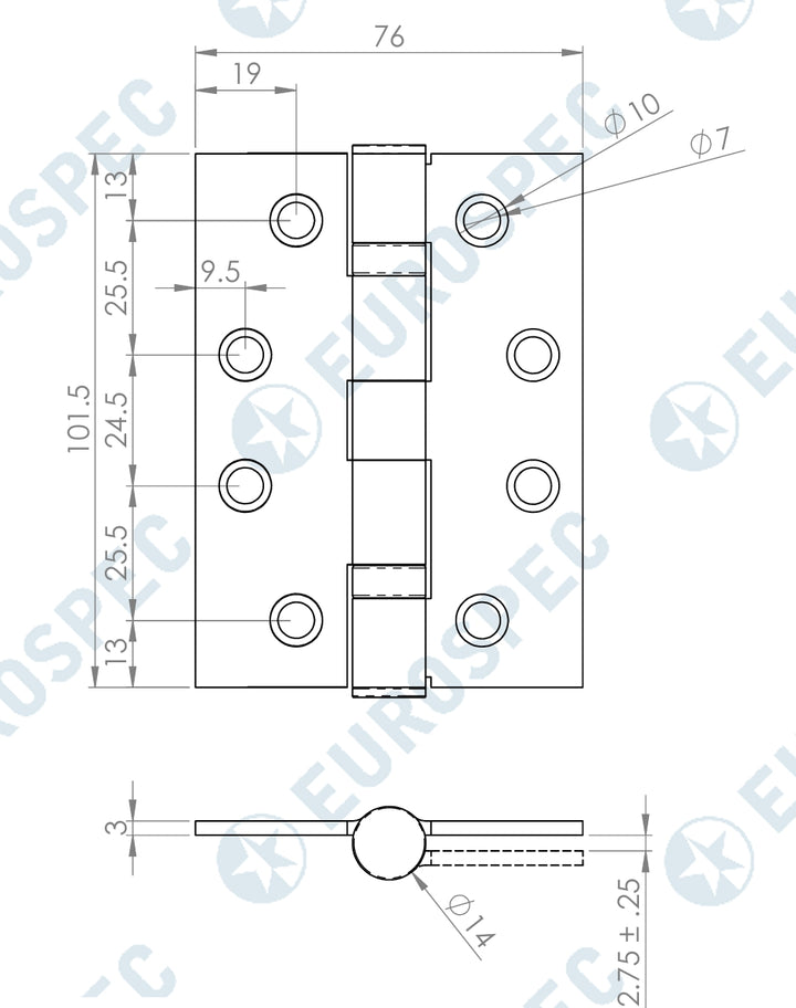 This hinge is suitable for doors that are 54mm thick and suitable for FD30 or FD60 fire doors when used in conjunction with the intumescent pads set.