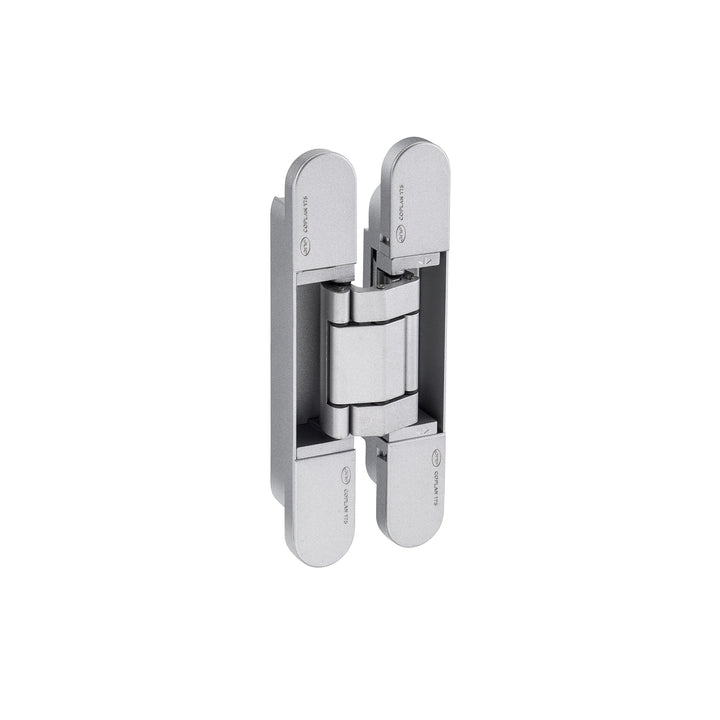 JNF Coplan 3D powder coated concealed hinge suits doors up to 80kgs (two hinges per door) or 120kgs (three hinges per door), to suit max leaf size 2000mm high x 1000mm wide with a minimum door thickness of 34mm.