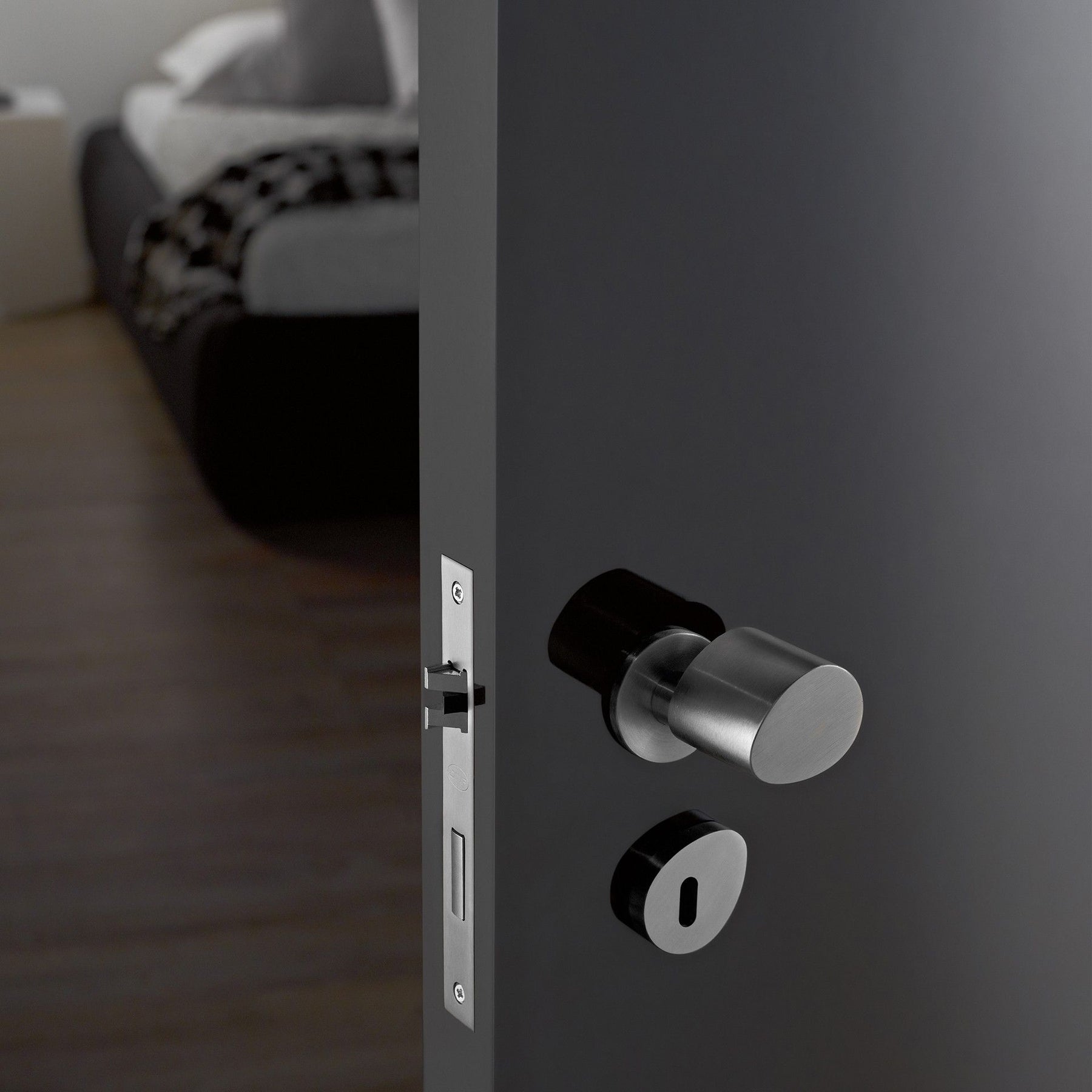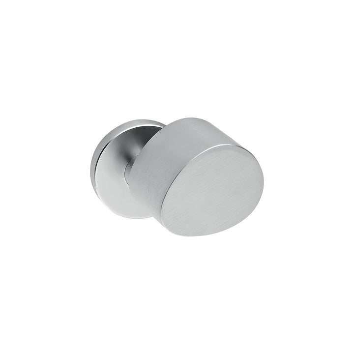 A set of two (pair) grade 304 stainless steel 50mm oval egg shaped door knob handles with 50mm dia concealed fixing unsprung roses complete with fixings to suit doors 44mm thickness.