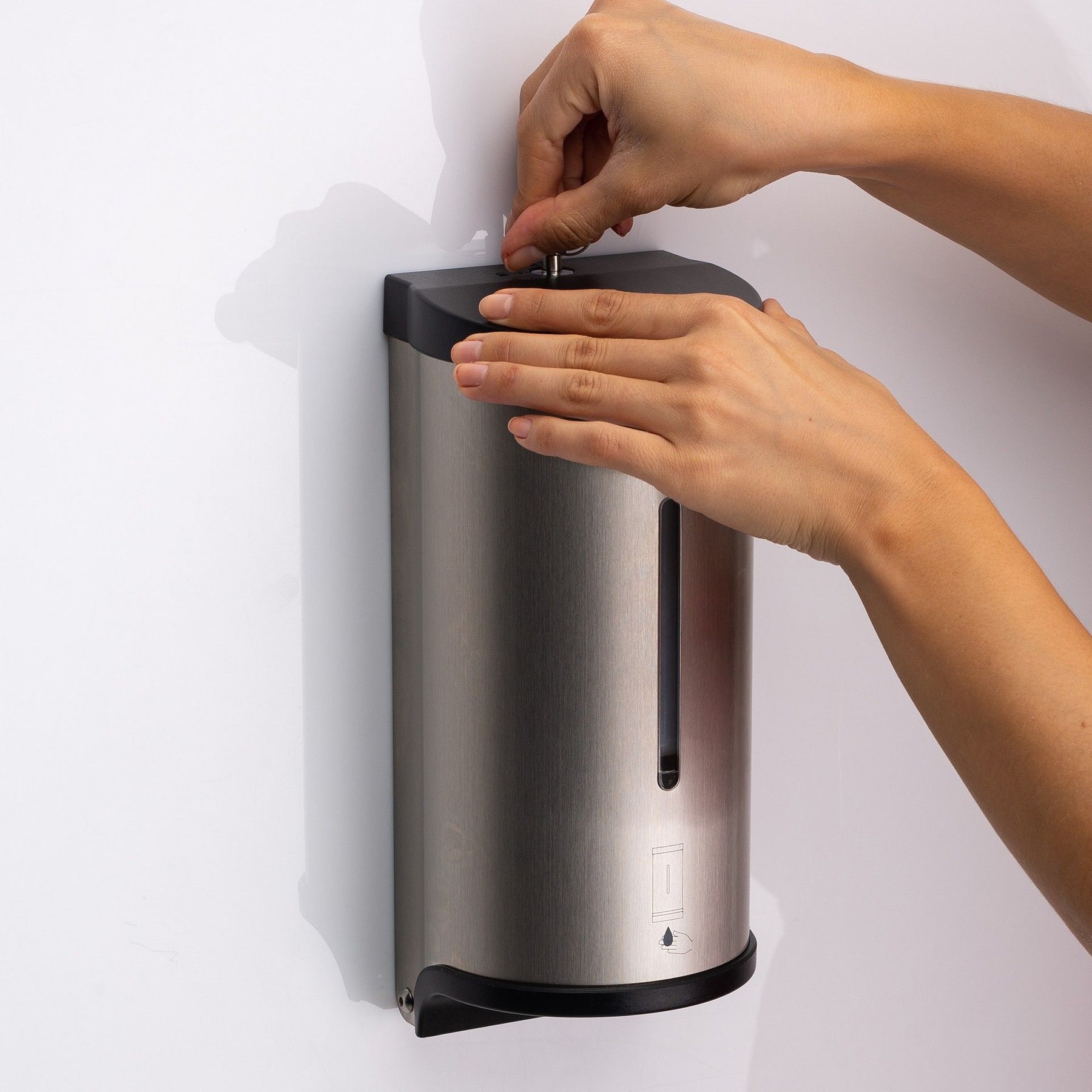 JNF satin grade 304 stainless steel automatic 900ml single drop (1-1.5ml) soap dispenser with level indicator.