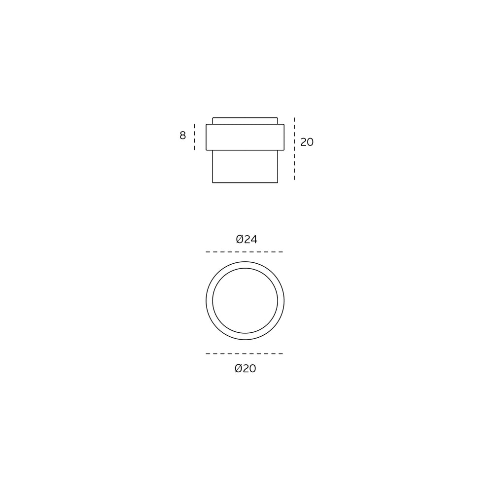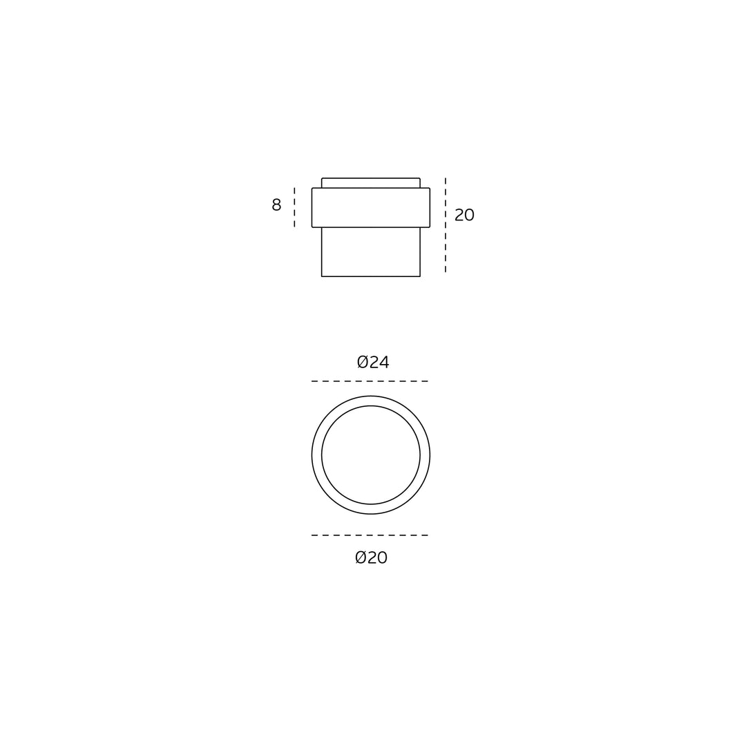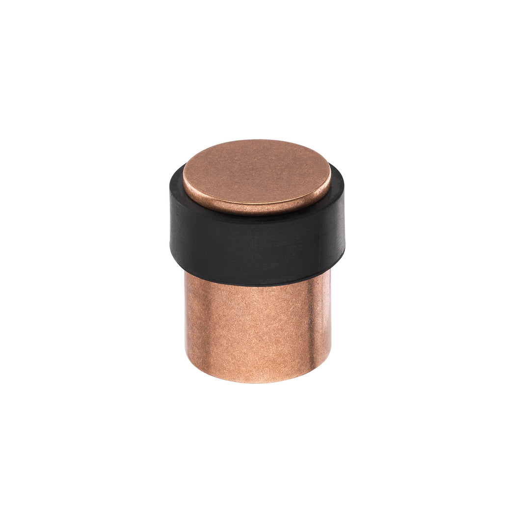 JNF real raw bronze concealed screw fixing floor mounted door stop with black rubber circular buffer; available in two sizes.