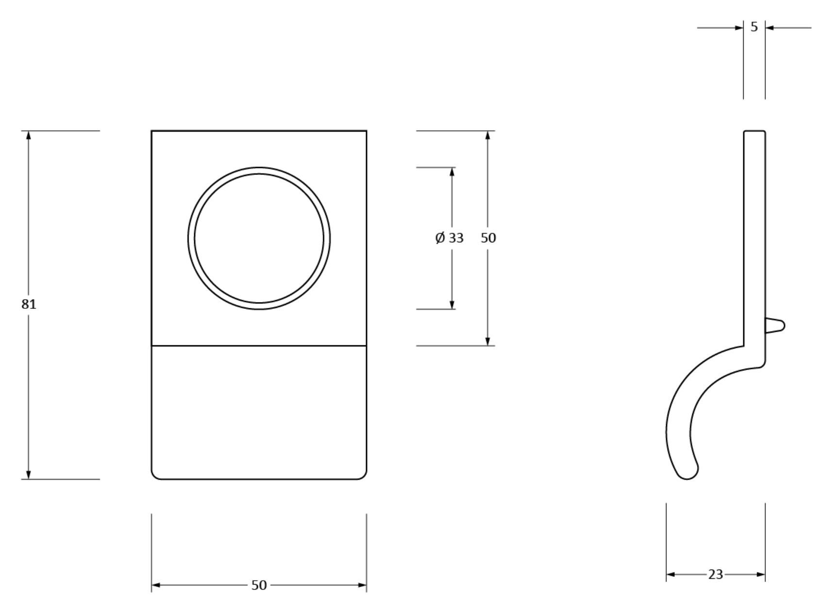 This pull should be fitted behind the cylinder of a night latch to assist in pulling the door closed. The pulls come without screw fixings but utilise use the force of the night latch to hold firmly in place. There is also a pin located on the back to help stop any movement.
