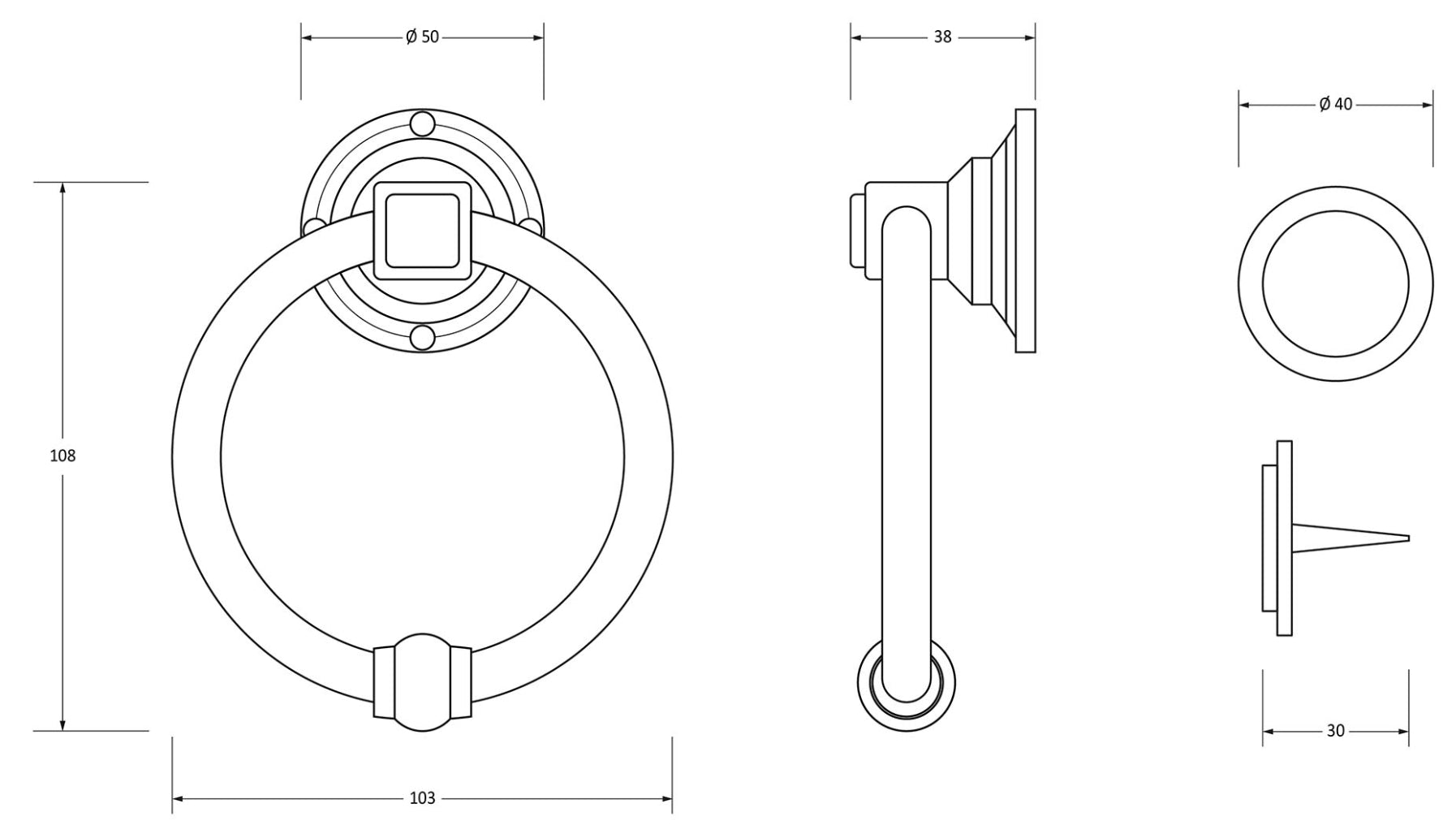 This visible fixing regency door knocker shows a true masterpiece of forging. Drawn from one piece of mild steel bar and bent to form the ring, this highlights every hammer blow by highly skilled blacksmiths.