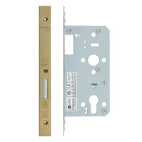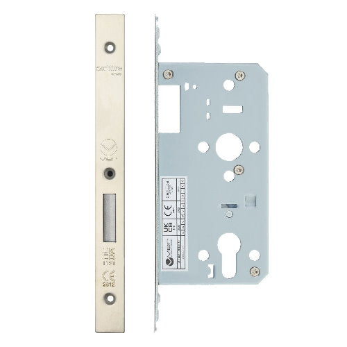 This deadlock is CE Marked and conforms to European standard EN12209:2003 Classification 3X810G2BC00 and conforms to the dimensional characteristics of DIN 18251and comes with a 5 year guarantee.