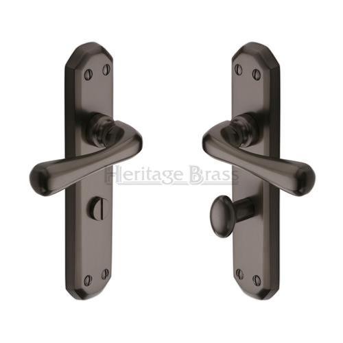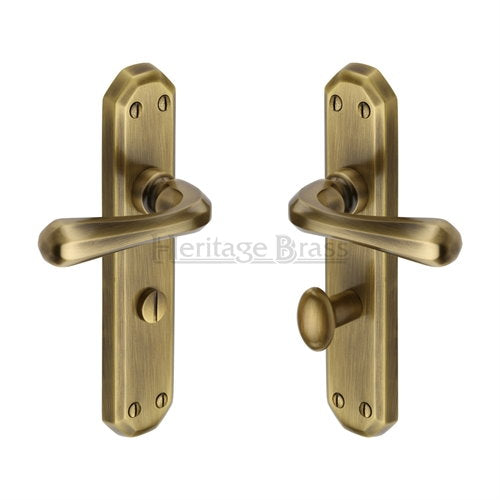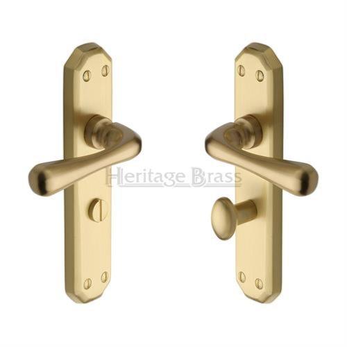 A set of two heritage brass 'Charlbury' design lever handles on back plate. Supplied complete with 8mm spindle bar and all relevant fixings.