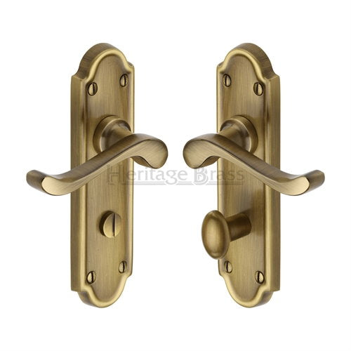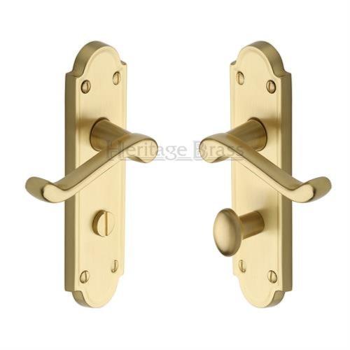 A set of two heritage brass 'Meridian' design lever handles on back plate. Supplied complete with 8mm spindle bar and all relevant fixings.
