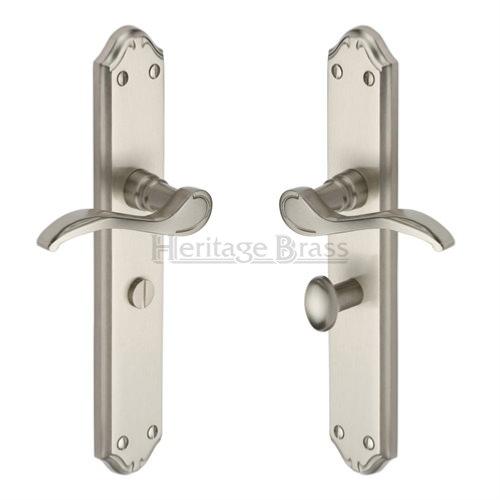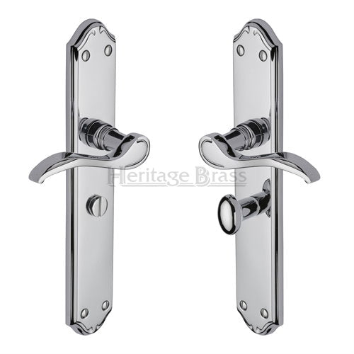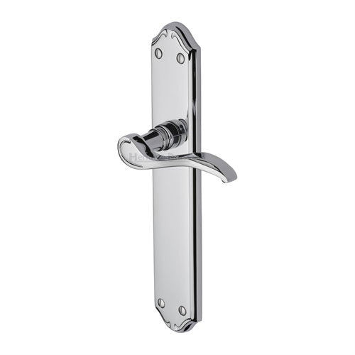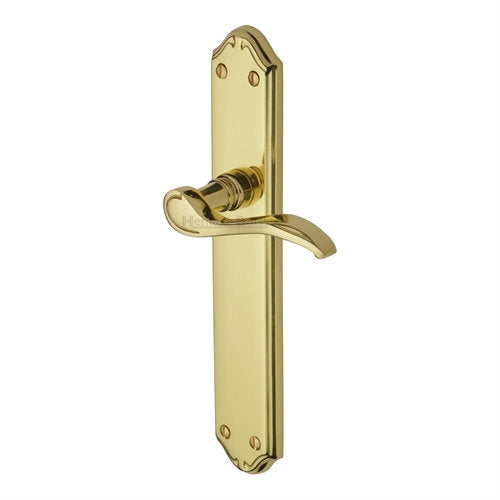 A set of two heritage brass 'Verona' design lever handles on long back plate. Supplied complete with 8mm spindle bar and all relevant fixings.
