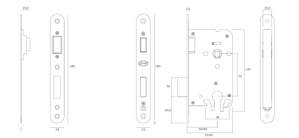 JNF satin stainless steel magnetic mortice flush-mounted lock, suitable for use with europrofile cylinders (supplied separately), with no protrusions on the lock front as you would normally see with a standard lock offers silent closing where the bolt is automatically engaged into the minimal strike plate when closed