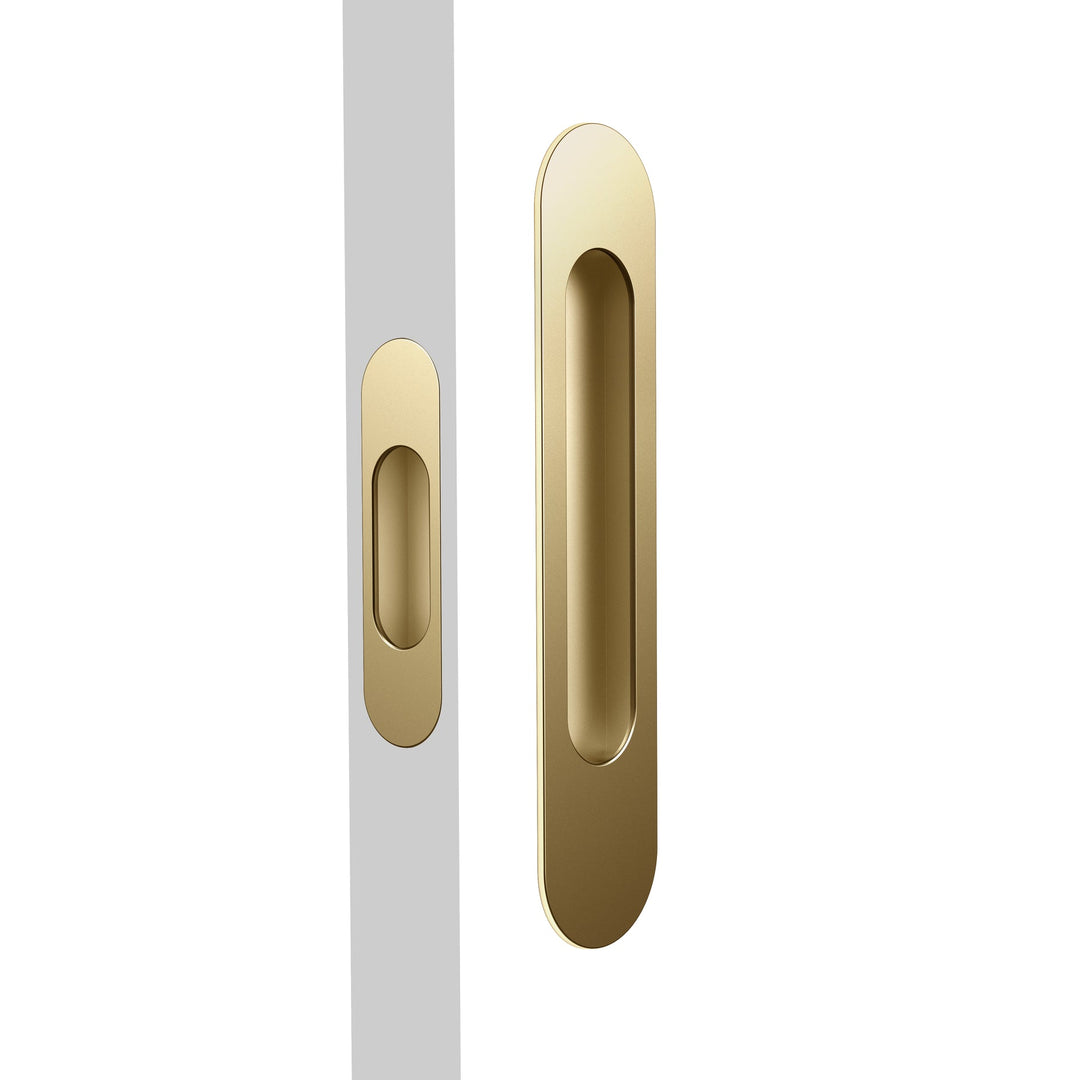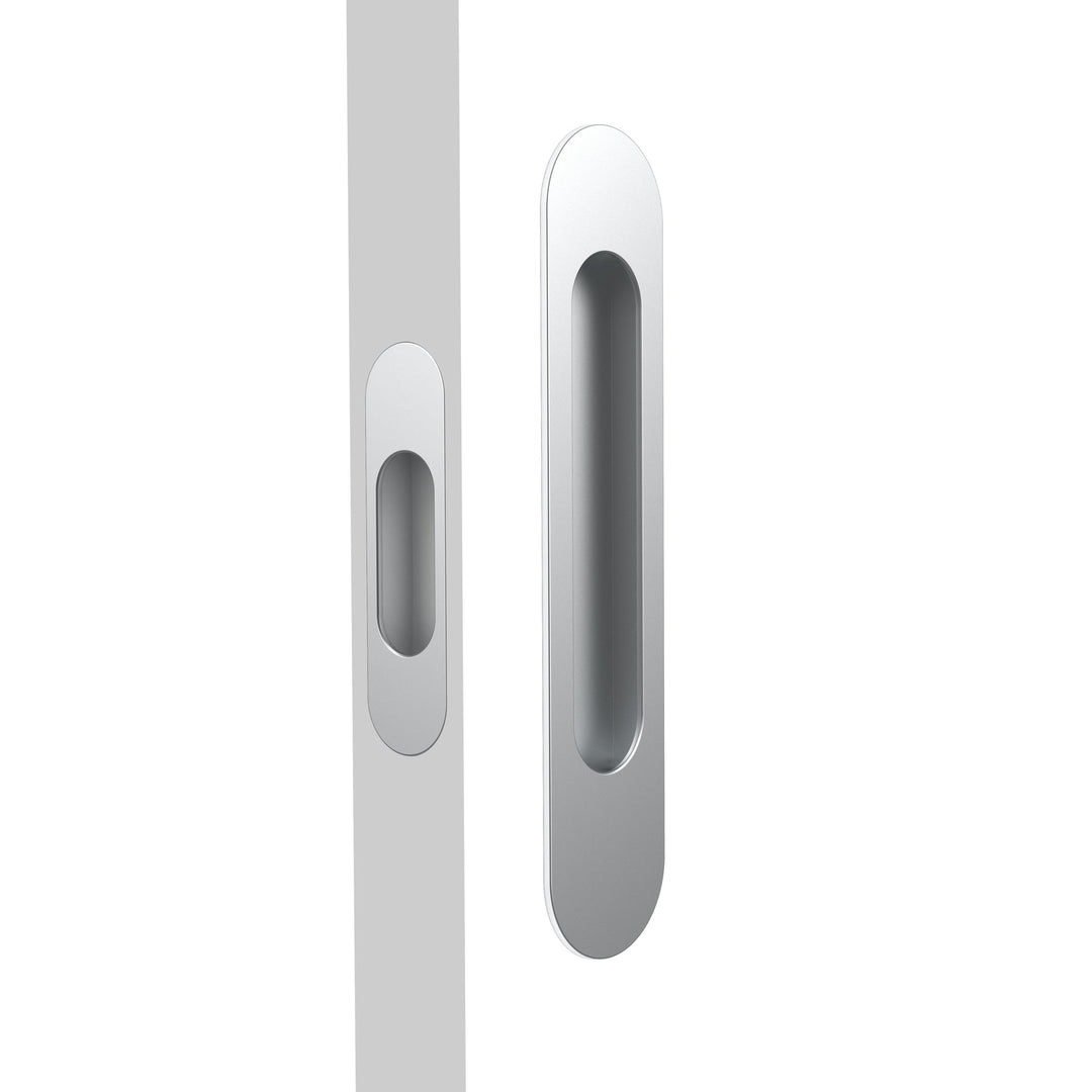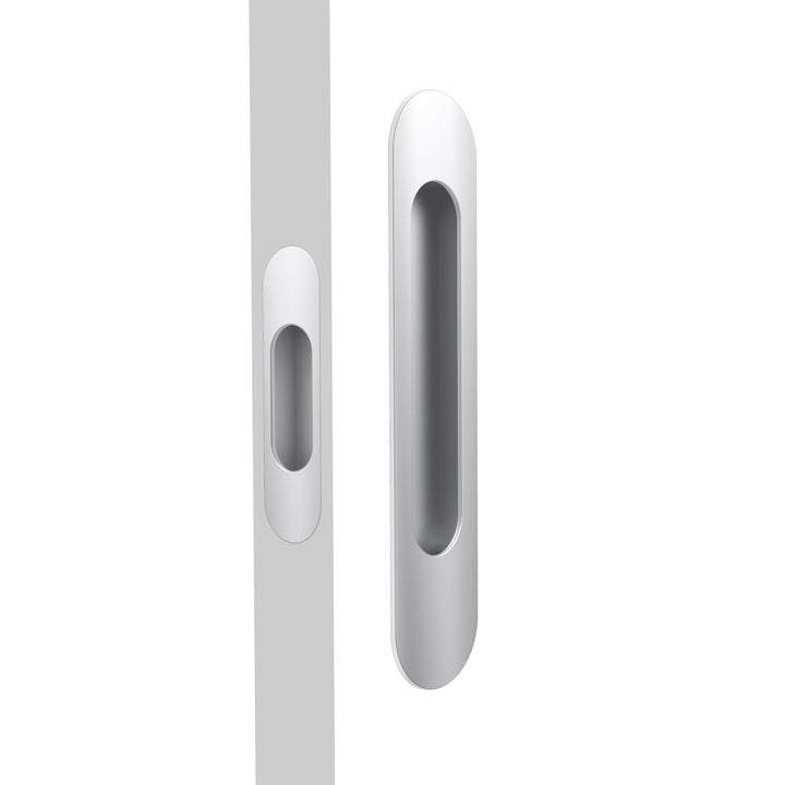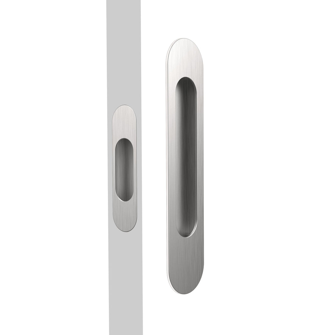 The flush pull set comprises 2x flush pulls and 1x end pull and includes all fixing components and fasteners for timber or aluminium sliding doors and kitchen cabinetry, also templates for multiple applications.