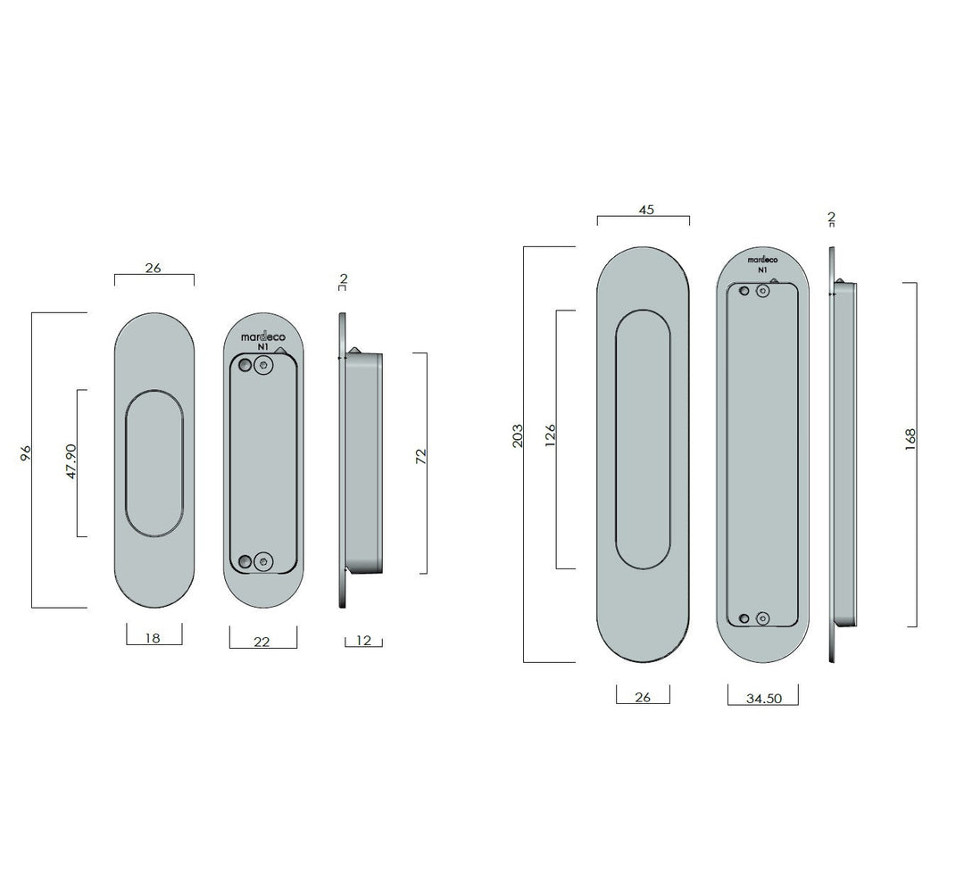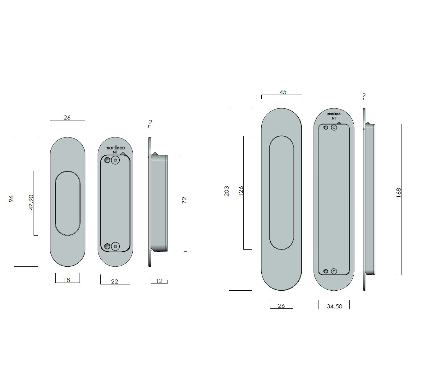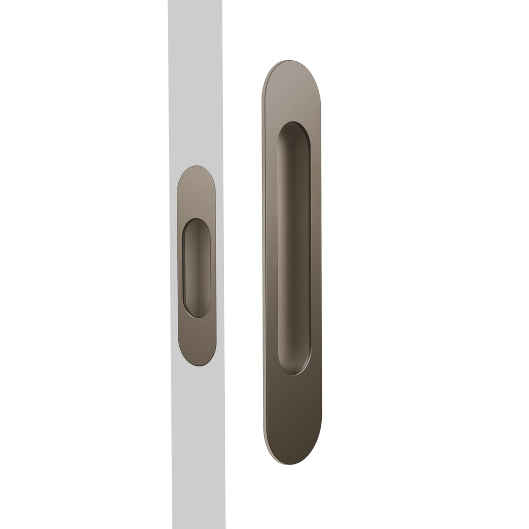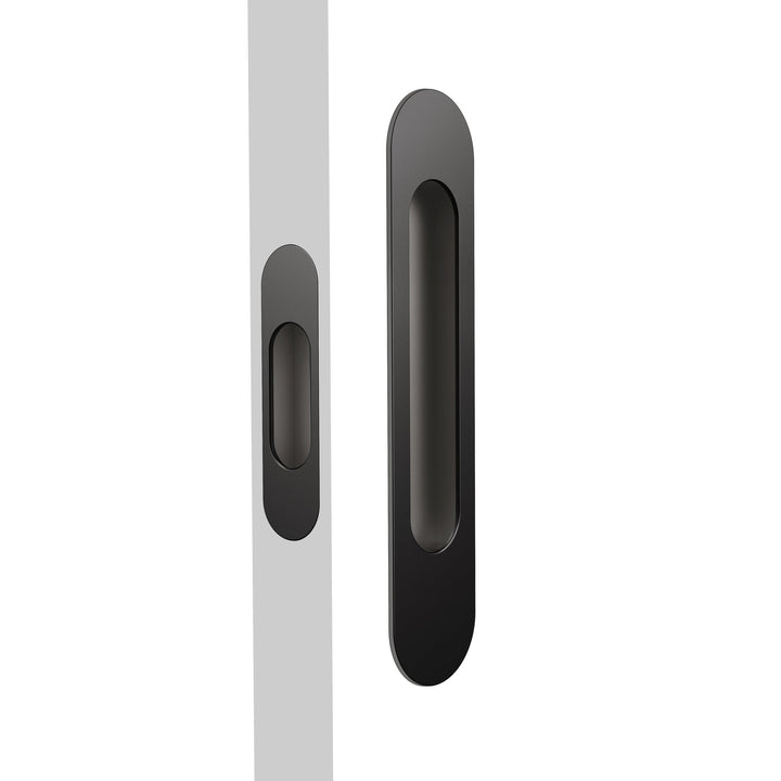 The flush pull set comprises 2x flush pulls and 1x end pull and includes all fixing components and fasteners for timber or aluminium sliding doors and kitchen cabinetry, also templates for multiple applications.