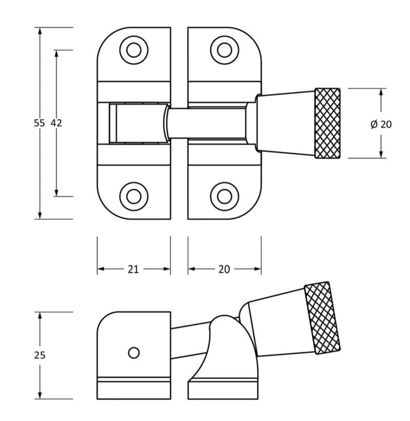 A single Brompton 20mm diameter knurled knob lockable sash fastener used to secure your sash window.