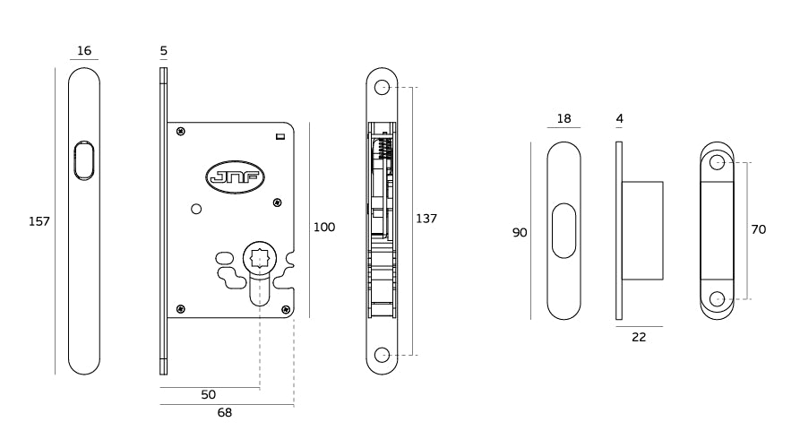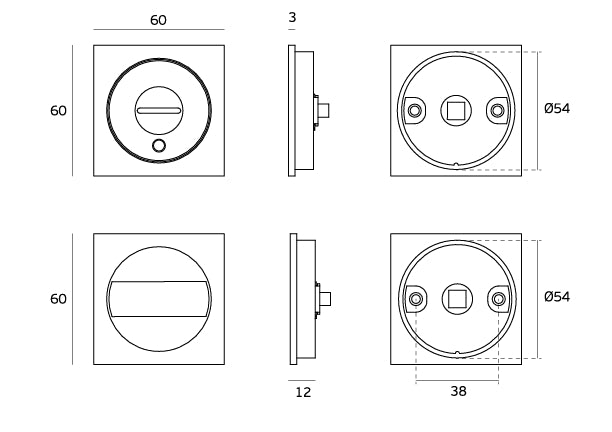 JNF 60mm square x 12mm deep turn and emergency slot release set, with green/red indicator for sliding doors.