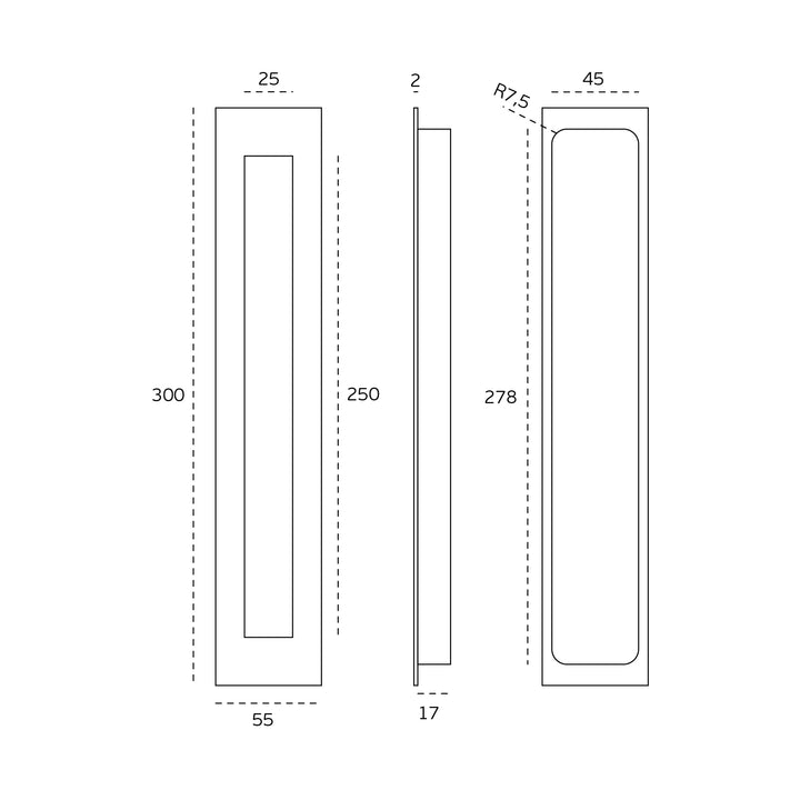 JNF Slender 300mm Flush Pull Cabinet Fitting