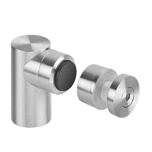 The JNF satin stainless steel with black buffer, concealed fixing, floor mounted door stop with magnetic holder to suit glass doors 8-12mm thick.