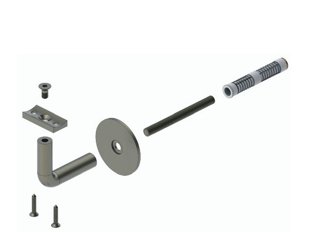 JNF satin stainless steel handrail bracket, to suit timber dowel, with M8 x 85mm long wall fixing. Supplied with raw plug