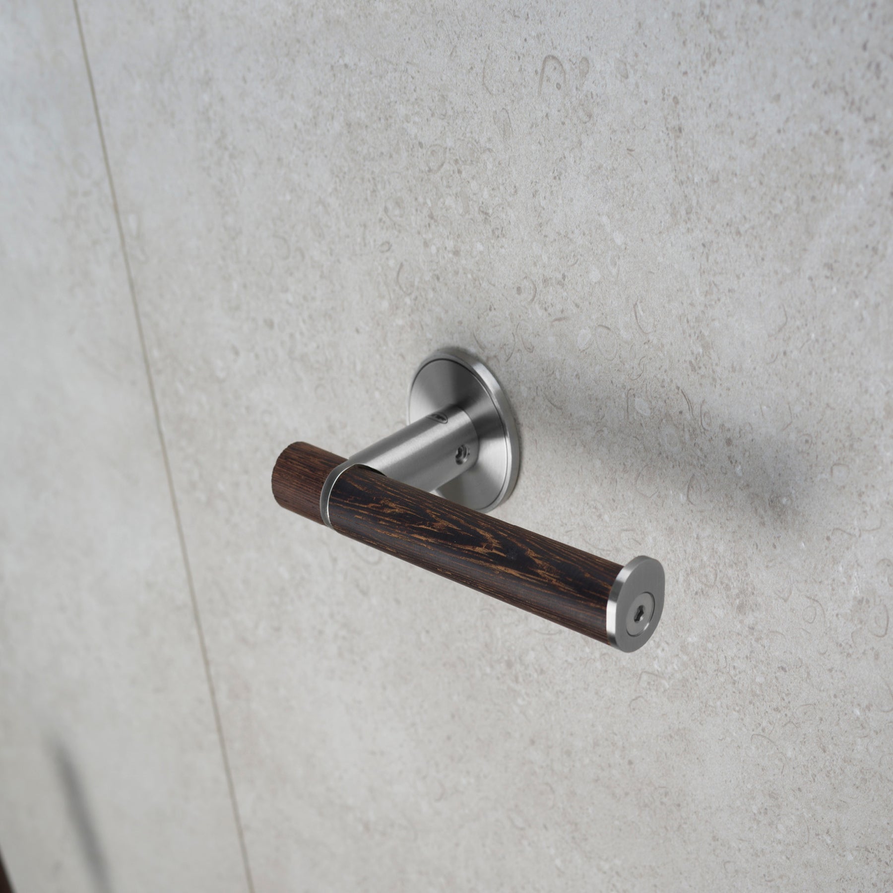 JNF Wenge Series grade 304 stainless steel and wenge wood wall-mounted toilet roll holder.