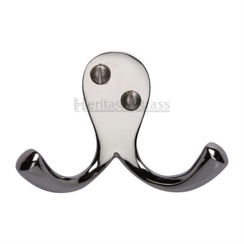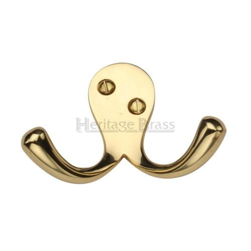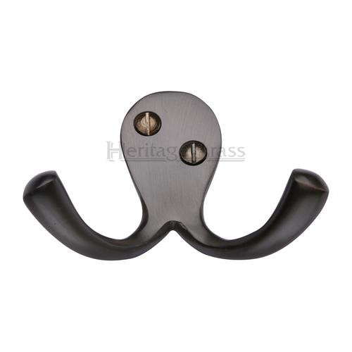 A heritage brass design V1060 visible fixing double robe hook. Supplied with all relevant fixings.