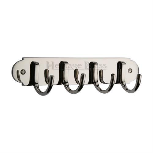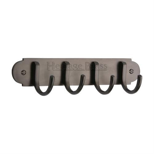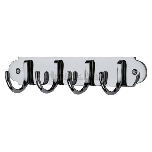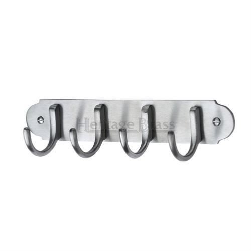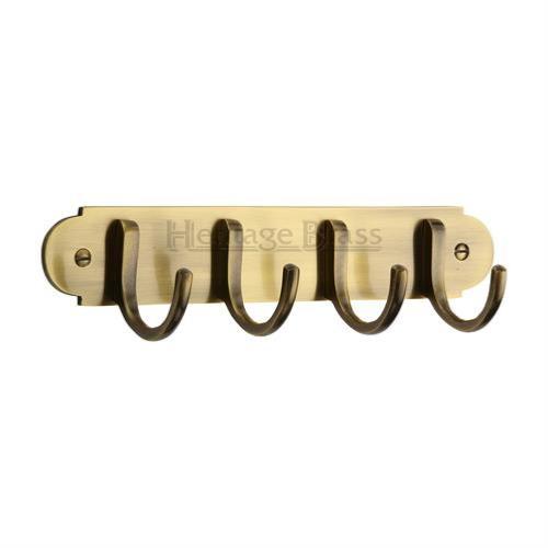 A heritage brass design V1079 set of 4 coat hooks on a visible fixing back plate. Supplied with all relevant fixings.