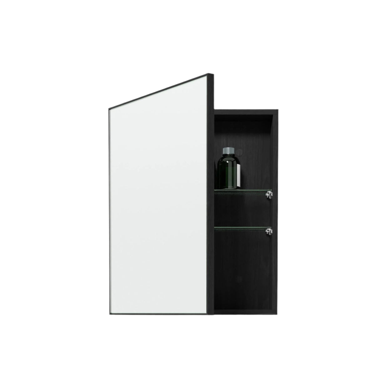Bathroom mirror cabinet 'Slimline 550' is a minimalist, streamlined, design that fits into the tightest spots. The single mirror door gives a full-face view and is framed with a solid oak beading edge. Inside it's fitted with 'soft-close' hinges for a luxury feel and there are two adjustable emerald edged glass shelves providing plenty of storage for bottles and lotions. The cabinet can be mounted for either left or right-hand opening.