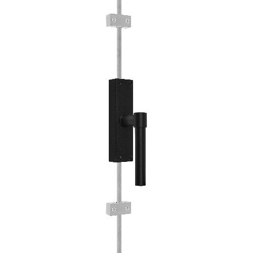Piet Boon stainless steel visible fixing espagnolette bolts with top and bottom receiver plate and four 8mm rod guides to suit doors up to 2.90 metres high, complete with PBL15 lever handles. Espagnolettes available left or right handed.