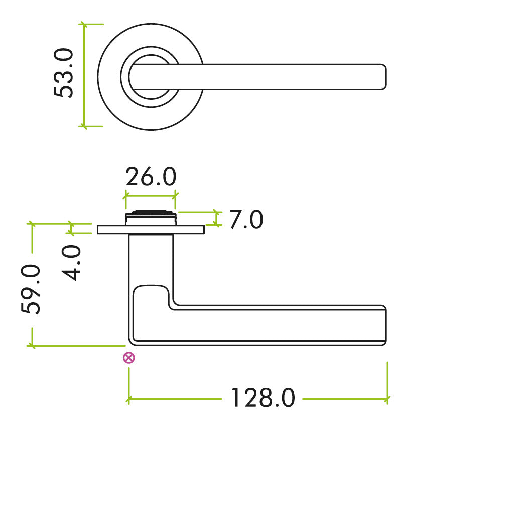 A set of two (pair) of Zoo Hardware Rosso Tecnica RT040 Varese lever handles with concealed fixing sprung roses, 8mm spindle bar, supplied complete with bolt through fixings to suit doors 35-54mm thick.