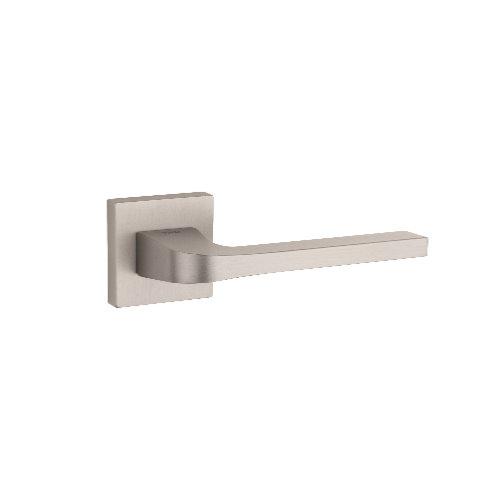 A substantial and charismatic handle that curves around from the square rose and grows into an elegant lever.