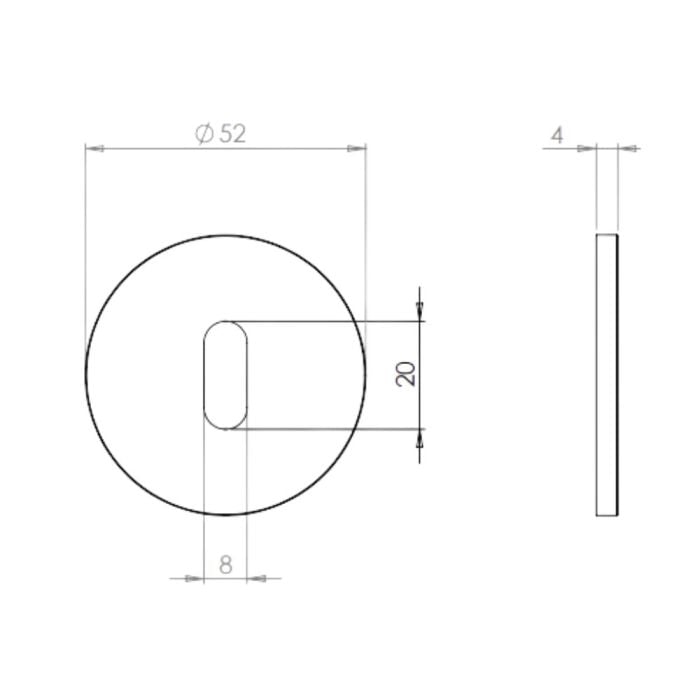 A single Baltic Grade 316 stainless steel 52mm diameter x 4mm thick concealed fixing lever key escutcheon to suit Chubb type keys.