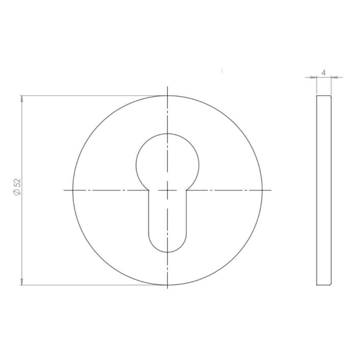 A single Baltic Grade 316 stainless steel 52mm diameter x 4mm thick concealed fixing europrofile cylinder escutcheon to suit Yale type keys.