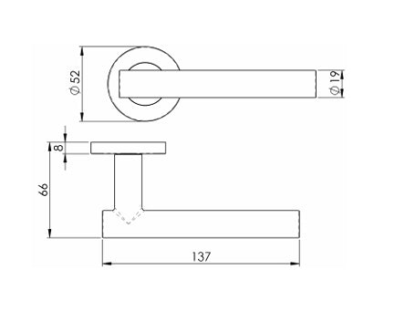 A set of two safety "return to door" Grade 304 lever handles with concealed fixing sprung roses, 8mm spindle bar, supplied complete with bolt through fixings and screws.