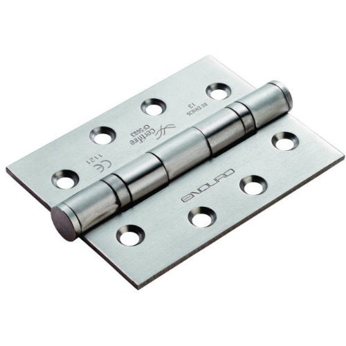 A pair (set of two) heavy duty Grade 13 ball bearing hinge with square corners to suit maximum door weight 120kgs per pair, suitable for use on fire doors and commercial buildings, tested and conforming to BSEN 1935:2002, CE Marked, supplied with screws. Certifire Approved